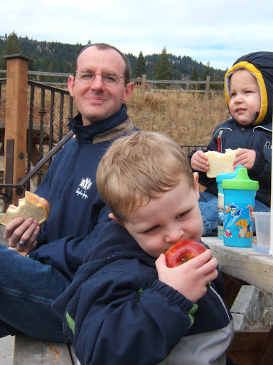 After church, we were very sad to have to pack up our things again. Jared half-thought we had moved to the cabin! Before we left, though, we drove up the mountain and saw snow! Jared was so excited! We got out and threw a few snowballs, and Jared was shocked by the pain that bare hands on snow can cause. He suddenly wasn't so excited for winter, at least until his hands warmed up.