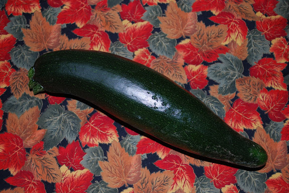 Well, just last week, Ryan spotted a small zucchini! We let it grow, and it became this beautiful specimen.