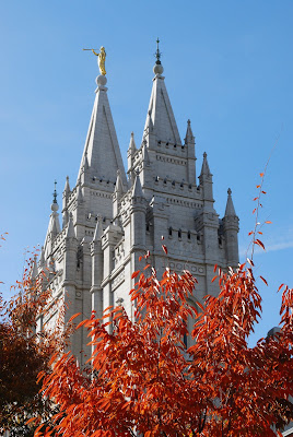 We slept in again Sunday morning, and I woke up without a voice! Since we'd spent all our time Saturday at BYU, we didn't get to take the boys to Temple Square. Besides, we figured it would be sorta like going to church. We noticed they've started putting Christmas lights in the trees and on the bushes, which makes sense. I mean, how long does it take to put that many billions of lights up every year? It's so amazing! I wouldn't be surprised if they started in June.